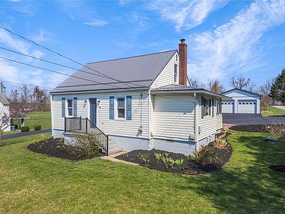 Totally Charming Home waiting for a new owner. 3 Bedrooms 1 Full Bath and a 2017- 2 Car Detached Garage. Nice Yard with Plenty of space for a huge Garden. Rear Patio area. 2020 Metal roof. Covered side porch. Enter the Mud room into Kitchen. Kitchen is open to Dining room. Spacious Living room with a Office space and separate door. 1st Floor Bedroom as well as 2 Nice size Bedrooms upstairs. Many updates. 2023-Recess lights to Kitchen. 2022-New Toilet and Tub Bathroom, added closet to Bathroom and main Bedroom. 2021- Railing at front door. 2020-Hot Water Tank, Replaced Boiler, 500 gallon Propane Tank, Removed oil tanks from basement, Insulated, added Kitchen island and painted Cabinets, added a sump pump and a wall in basement. 2019- Railing Living rm and redid steps, Kitchen faucet/sink. 2016-Public sewage, Doors, Door/Knobs Bedrooms, Kitchen Ceiling Fan, Replaced office subfloor, Refinished floors and painted . Removed wall in Kitchen. 1 year Home Warranty for the buyer