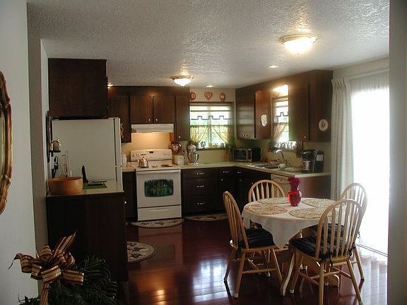 Beautiful remodeled ranch. Extensive cabinetry/storage. Large decks. Seven sliding patio doors. Central furnace. Gas water heater. Auxiliary building with 1,800 sq ft that has central heating, bathroom, storage. and workout room (easily converted to apt.) Sub-dividable one-acre, level, fenced lot within UGB.