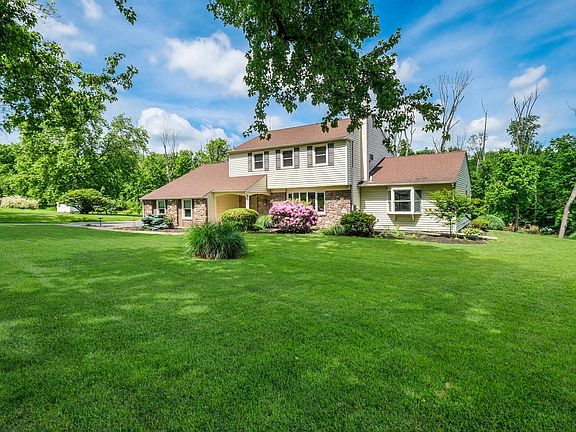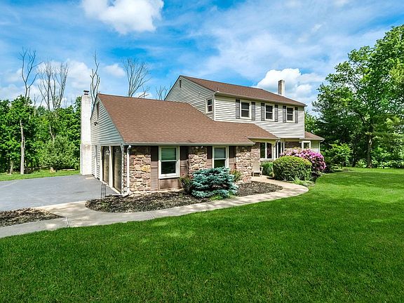 Welcome to 1630 Franklin Dr.. Nestled on a quiet street within the serene landscape of Buckingham Township, this exquisite 4 bedroom stone front colonial embodies the quintessence of privacy and tranquility. The heart of this home is its open concept kitchen, adorned with maple/cherry cabinets and plenty of windows offering lovely views that bring the outside in. The seamless flow from the kitchen dining area through glass doors leads to the deck. Adjacent to the kitchen, the great room, anchored by a stone wood-burning fireplace. To the right of the kitchen is a formal dining room. From the dining you enter the large in-law suite with plenty of windows, vaulted ceilings and walk in closet. Upstairs has a large master with 2 additional bedrooms. Bring your ideas and paint swatches. This home is ready for your finishing touches and Care.