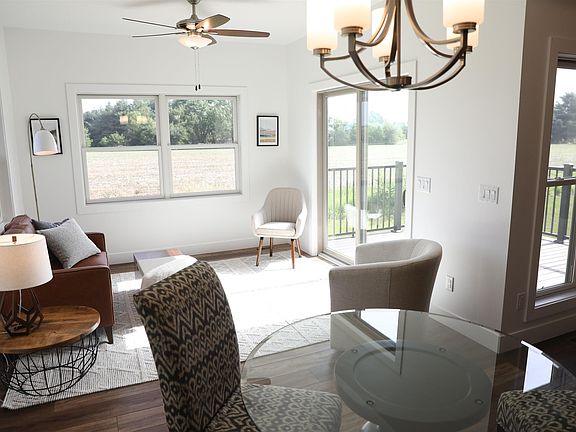 Enjoy easy living in this exciting and accessible ranch located in the Mill Creek subdivision. Features 4 bedrooms, 3 baths, 2 car garage, sunroom, walk-in closet in the master bedroom, gourmet kitchen, deck, tray ceilings, beautifully finished with painted cabinets, quartz tops, tile shower, and partially finished basement with LVP flooring. All villas built with accessibility in mind; step less entry, walk in showers, and much more. $65 per month for HOA covers all lawn and snow care. Dan Dolan is a licensed IA Realtor and Principal in Dolan Homes.