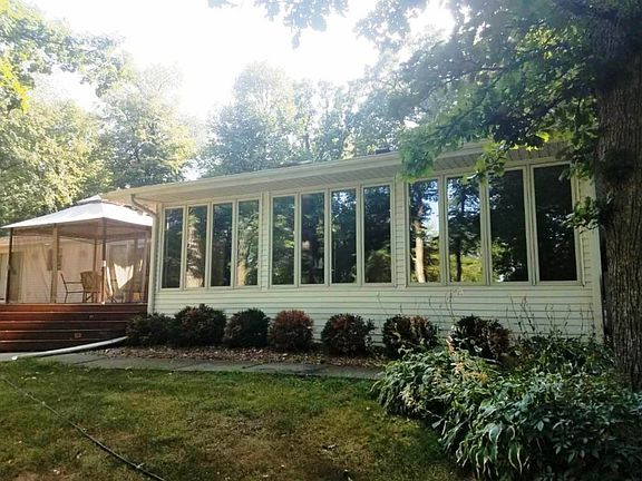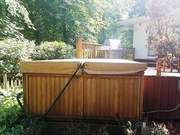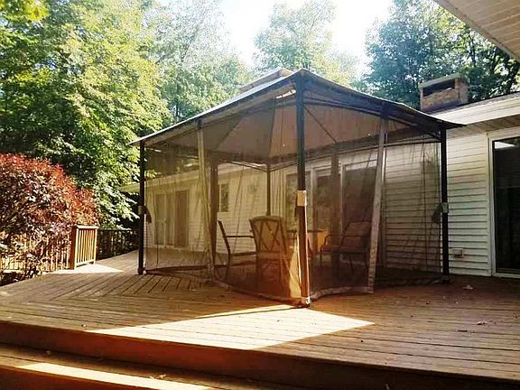 Well maintained home with a view of Yellow Creek. The dining room has natural light from the windows with plenty of room your dining room outfit. In the kitchen is Corian counter tops, plenty of cupboards with a walk in auto light pantry in the hallway, and eat in area with doors leading to the deck. Entertain on the deck with a screened in canopy, hot tub, and watch the wildlife. Warm up next to the fireplace in the living room. The master bedroom hosts a master bath with a walk in tile shower, separate bathtub, and doors leading to the deck and hot tub. The other bedroom on the main floor has a wall of built ins. Family room, 2 bedrooms, workbench and storage are in the lower level. Duct cleaning was done in 2018, water heater in 2010, hardwood in 2006, Corian counter in 2000. Basement floor painted, walls in Lower level bottom 2' has fiberglass drywall.