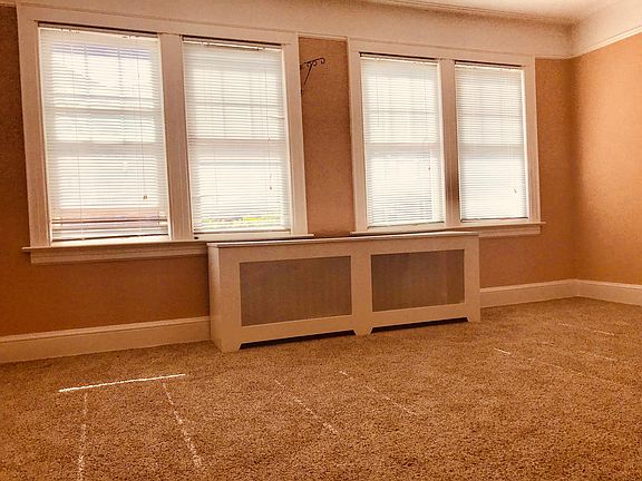 Two bedroom apartment with separate dining and living room. Eat in kitchen. Heat, parking, and washer included. New carpeting. Applicants must make $64,000 and have credit over 620. 1 month security deposit, 1 month rent, and 1 month broker fee to move in. No pets or smoking.