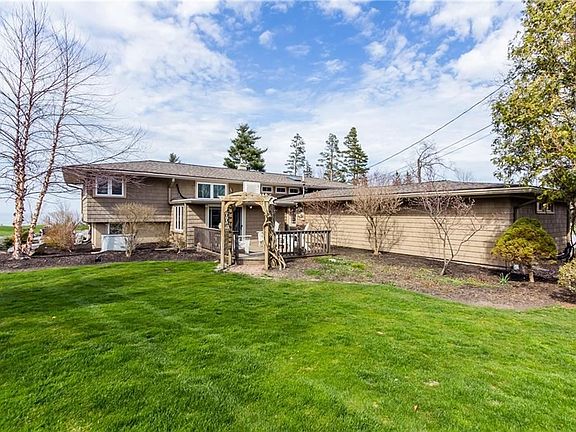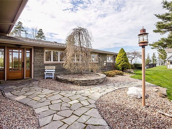 Waterfront & Picturesque Private retreat! Architectural digest home on pvt 2.9ac w/beach access to Lake Ontario. Beautiful EIK w/stainless steel wolf dual range w/grill stove, wolf convection oven, microwave & w/subzero refrig. Formal liv rm w/fplc & fam rm. Lower level includes a rec rm w/a recently remodeled full bath. There is also an off which can be used as a 4th bdrm. A lovely master w/ new ba incl shower & jacuzzi. 2nd new bath, 2 generous size bdrms, 2nd flr Lndry. Picture yourself floating in stunning 19x42 in ground pool, playing tennis, sitting in gazebo, watching the most magnificent sunsets, or roasting marshmallows over gas fire pit under stars. There is a pvt 2 story pool house, det 2 car gar, potting shed & 3 car att gar. The cement stamped driveway is also new!!