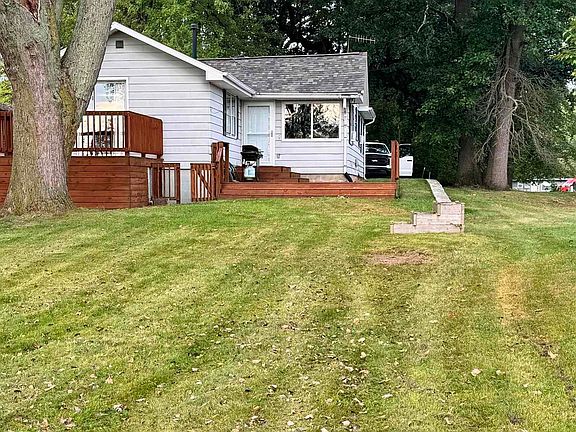 Great Lake front location on Pike Lake. This 3 bedroom 1.5 bath Cottage is situated close to town, but hidden away nestled near the lake. This large lakefront lot also includes a lot across the street with 2 sheds. This Cottage offers a 2 car garage and has been remodeled over the years. The most recent updates are: a new main bedroom, (taken down to the studs) both bathrooms have been remodeled, and newer roof. Sit in the large living while watching the boats go by or sit on the front deck and see the beauty of the lake. Back lot has multiple uses, just use your imagination.