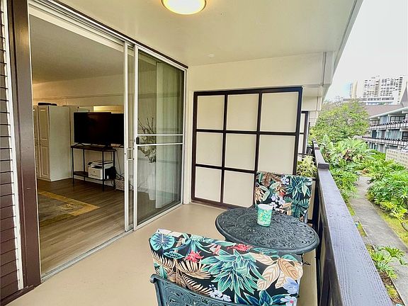 RARE HAWAII STYLE INDOOR/OUTDOOR LIVING ! LARGE OPEN LIVING SPACES AND HUGE COVERED LANAI ! RENOVATED APT. Preferred, corner apt. a in quaint Makiki Boutique building surrounded by single family homes and condos. Apt has a townhouse feel with EASY access directly to your end unit's front door via 2nd floor staircase. X-LG covered lanai runs entire width of apt. with a privacy divider and relaxing treetop, city, mountain views. “Dine in” while dining out on the shaded lanai, meditate, exercise, or relax and surf the web. Roomy floor plan has just under 500 Sq. ft. total combined indoor/outdoor. High ceilings with floor to ceiling windows. Soft blue hued wooden kitchen cabinets, White Quartz countertops & back splash, Vinyl plank flooring, wall mirrors. Painted & re-textured ceiling (No popcorn). X-Lg. bathroom w/storage cabinet, re-glazed bathroom tiles w/a combo shower and Zen soaking tub. Detached wardrobe armoire. Swim at the pool while doing laundry nearby. Air conditioner. Near major bus lines, Punahou school, UH, Ala Moana shopping, downtown. No assigned parking. Street parking only. High owner occupancy. Res.manager.Pets Cat/bird ok verify. Enhanced photos. 1031 Exchange