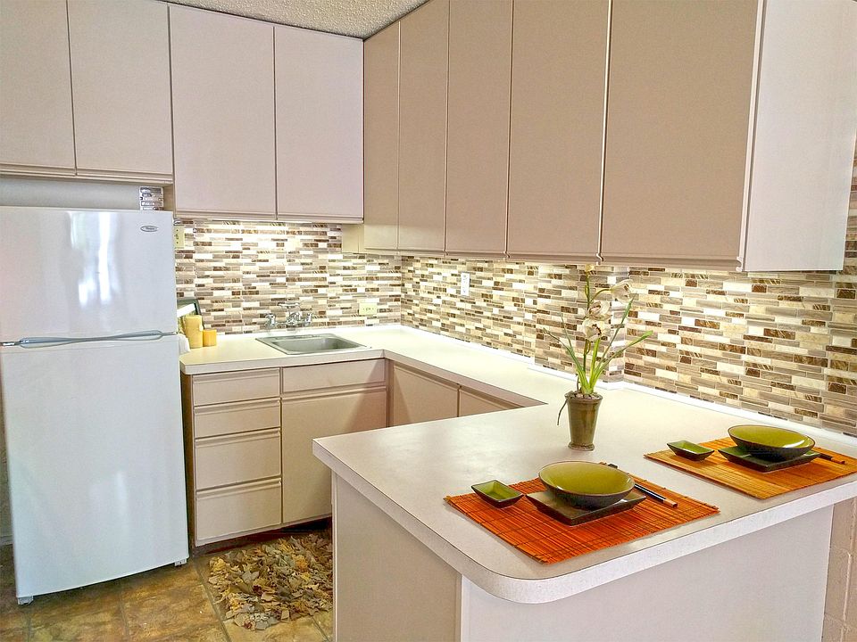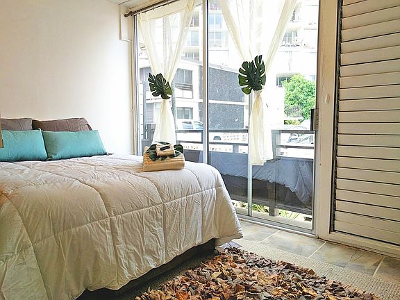 Spacious convenient studio located in central Makiki. Close to Punahou, shops and dining. Unit offers AC, full kitchen, and utilities included (except internet/wifi). Street parking only, no pets or smoking. Complex offers onsite resident manager and cozy garden grounds to relax. Community laundry and cool pool on site to enjoy. One year lease and $30 application fee per adult. Need 24 hours to show as tenant occupied. (Photo featuring wall scene has been painted over neutral). This is a walk up building with no elevator. Unit is located on the second floor.