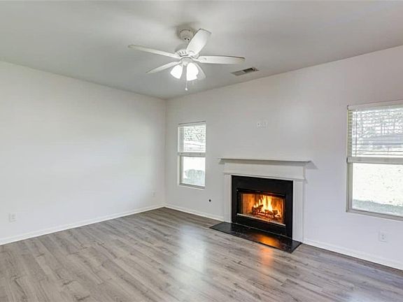 Welcome to this beautifully maintained 4 BDRM, 2.5 BATH home! Enjoy your morning coffee on the charming covered front porch before stepping inside to find luxury vinyl flooring and carpet throughout the home. The bright and inviting living room features plenty of natural light and a cozy fireplace, creating the perfect gathering space. The open-concept dining area offers access to the covered back porch and fenced backyard, ideal for entertaining or relaxing with a wooded view. The kitchen boasts white cabinetry with ample storage, stone countertops, stainless steel appliances, a breakfast bar, tile backsplash, pantry, and a large island for extra prep space. Upstairs, you’ll find all four spacious bedrooms. The primary suite offers high ceilings, walk-in closets, and a spa-like bathroom with a double vanity, soaking tub, separate shower, and large window for beautiful natural light. Located near GA-316, with shopping, dining, and schools just minutes away and best of all, no HOA!