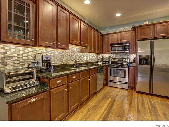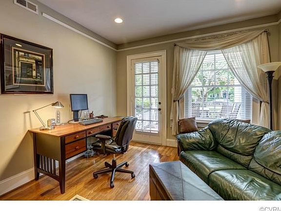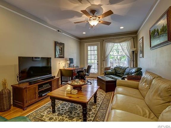 Beautifully remodeled first floor condo in the heart of the Fan and on Monument Avenue. Don't miss this opportunity to own in this historic building along this magnificent avenue. Hardwood floors throughout in excellent shape. Kitchen is pristine with new cabinets, countertops, appliances, etc. all appliances convey including washer and dryer. Wonderful private patio facing Monument is perfect for morning coffee or evening drinks. Patio furniture conveys if buyer wants it. 2 full bathrooms with tub and shower, new vanities and commodes. Installed custom closet organizers in 2012 while also painting entire interior or residence. Well maintained, newer HVAC. Installed custom wood blinds on all windows that will remain. 25SF storage space in basement. Water, sewer, 1 parking space, and common area maintenance included in monthly condo fee of $247. Move in ready, just need furniture.