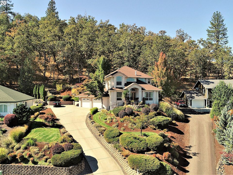Beautifully designed & appointed custom built home overlooking west Roseburg. The soaring entryway leads you to the office/den, formal living room, dining room & kitchen with family room. The kitchen includes tile floors, granite counters, natural wood cabinets & large island with breakfast bar. The master bedroom suite includes sitting room, double sided fireplace, walk-in closet, walk-in shower & jetted tub with fireplace. Downstairs guest suite with bathroom, living room & outside entrance.