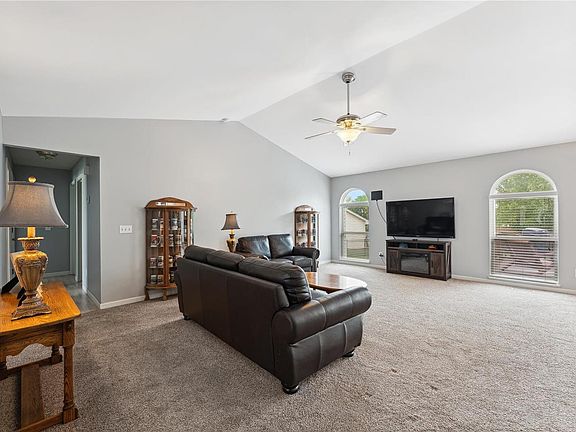 Located in a highly desirable area, this sharp ranch features an open floorplan, 3 bedrooms, 2 baths, oversized 2 car garage and fully fenced yard for children or pets. Foyer opens to Vaulted Great Room highlighted by two arched windows and ceiling fan. Vaulted Kitchen/Breakfast Room has large island and bay window with atrium door opening to deck. Primary Bedroom has walk-in closet, ceiling fan and luxury bath with jetted tub and separate shower. Convenient Main Floor Laundry. Exterior features brick and vinyl siding, newer driveway and deck overlooking large fully fenced yard. Updates include: HVAC 2018, Fencing, Hot Water Heater, Roof, Driveway, Garage Door and Opener. Full basement with bath rough-in ready for future expansion or storage. Great Location with easy access to Highways 364, 40 and 70, shopping and excellent schools. COME TAKE A LOOK BEFORE IT'S SOLD!