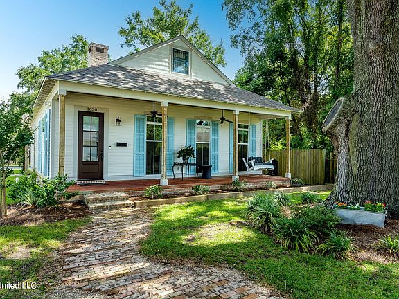 Dreaming of the Beach! Beautiful coastal cottage framed by 2 large Majestic Old Oak trees. The 8' windows open to the front porch, where you can enjoy the southern breezes or head outdoors and relax in your porch swing, where you can swing your cares away. The shaded front yard is perfect for outdoor dining, entertaining, and family fun. The Great room has 10' ceilings, 8' doors, and a double-sided fireplace that subtly divides your Living and Dining areas. This home has beautiful and thoughtfully curated treasures that add an extra touch of elegance. Two stained glass windows, one in the transom from the early 1900s and one in the Gable end from the late 1800s, out of an old church. The tin ceiling in the Great Room is from India and emphasizes the 10' ceilings. Amenities include stainless appliances, built-in cabinets in a spacious laundry room, and a Rinnai tankless hot water heater, to name a few. This location is perfect for a Bike ride to the Boardwalk and downtown Gulfport to experience coastal cuisine at a local restaurant, the new Aquarium & Jones Park, a farmer's market every Wednesday, a walking track, and a splash pad. The Boardwalk runs along the Beach past quaint towns, with many fun stops along the way, such as Casinos, Restaurants, Museums, and many other entertainment choices. Everything you need to make your dream of coastal living come true, from sunrise to beautiful sunsets. Video tour: https://g-hub-real-estate-photography.aryeo.com/videos/a6049c1f-9b12-43d0-b4d4-059239f090f7