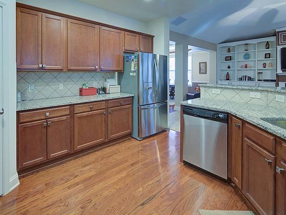You'll love this spectacular oversized Ranch located minutes from 400, The Greenway, & major shopping. This immaculate & pristine home includes lots of extras eg: Open floor Plan, 3 spacious secondary bedrooms, Huge Master w/His & Hers Closets, Beautiful Kitchen w/Custom Tiled Back Splash, Granite Counters, Stainless Appliances, gorgeous Custom Built-Ins, separate Dining Room & Bonus Room. An extended back patio offers extra entertaining space. Your own Private fenced backyard, Professional landscaping, lge 2 car Garage & Awesome Amenities make this a must see home!