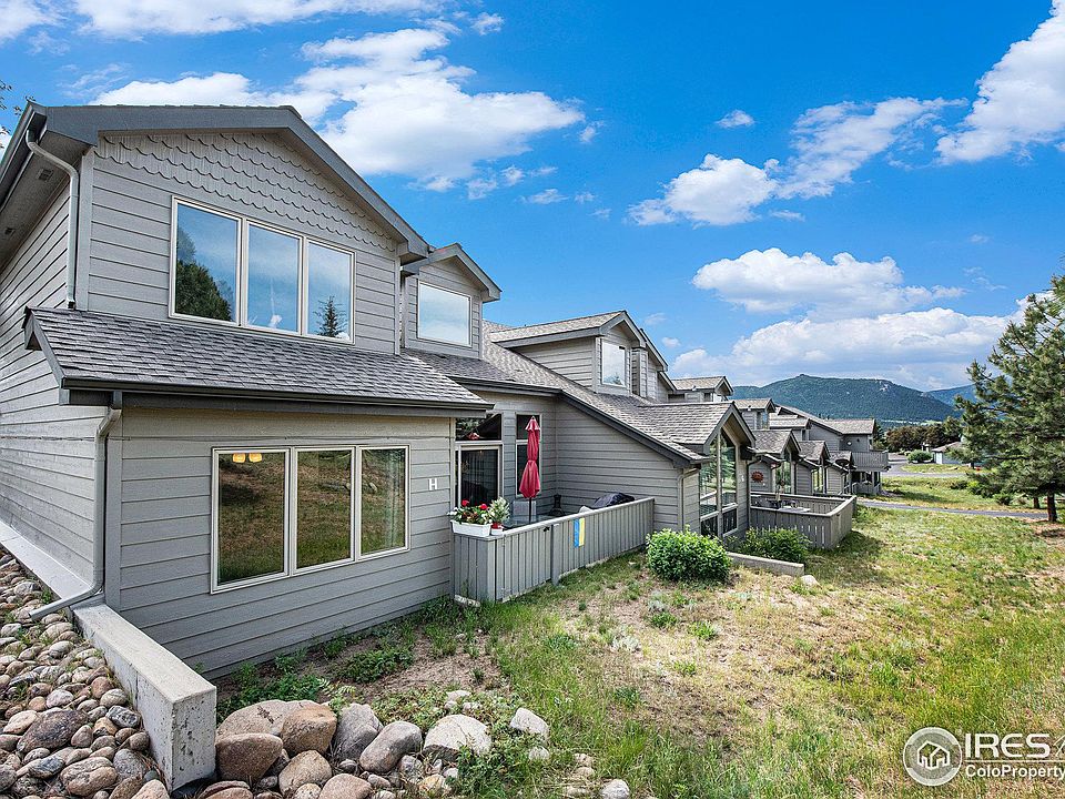 Transferable Short Term Rental comes with this beautifully appointed end unit condo in Ranch Meadows and is located away from the highway, ensuring a quiet and peaceful living experience. This property offers stunning views of Rocky Mountain National Park, providing a picturesque backdrop for your mountain getaways. Its an excellent opportunity for those looking to generate income through vacation rentals and most furnishings are included in the sale. Upon entering, the great room and kitchen offer plenty of room for comfortable seating arrangements, allowing you to relax and entertain. The condo features a main floor primary bedroom with a large walk-in closet, offering convenient and comfortable living. On the upper level, there are two guest bedrooms and a private bathroom, ensuring comfort and privacy for everyone. Additionally, you will find an open loft area with a large view window, providing a cozy spot to relax and enjoy the scenic vistas. One of the highlights of this property is the private patio, where you can unwind and soak in the natural beauty that surrounds you!