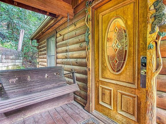 This home is a custom-built log cabin located in the beautiful Waldens Creek area. It has been used as an overnight rental for over the past ten years, with an income of $43k for 2022! It comes fully furnished and includes a large stone electric fireplace, hot tub, and air hockey table. The primary bedroom has its own full bath with a jacuzzi tub and a walk-in shower. It also includes a loft that is accessible from the back deck and an unfinished basement that could be turned into a game room or an additional sleeping area.