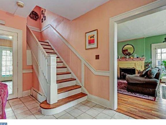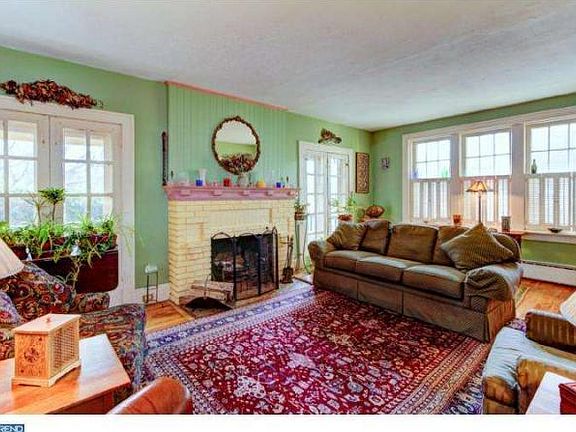 Gorgeous Dutch Colonial on "The Island" with breath-taking views of the Delaware River. Sit on the porch and enjoy serene moments as the tranquil river flows by. The gracious entryway with tiled floor leads to the large living room with a brick wood-burning fireplace and French doors to the outdoor porch. French doors also lead to the formal dining room with intricate woodwork. The renovated kitchen has mostly black appliances, rich laminate counter top, light stained wood cabinets and ceramic floor. The second floor has three bedrooms and bath. The large main bedroom has two closets, ceiling fan and sitting area. The bathroom has been renovated with black/white "subway" ceramic tiles surrounded by period fixtures. The third floor has a large room that makes a perfect family room or office. Special features: beautiful hardwood floors, hot water baseboard heat, new roof, moldings and more! There is a one car detached garage and a rear deck. The grounds are landscaped with many perennials. Lots of charm and tastefully decorated in rich bold colors with mostly white trim. The house is in a flood zone. Flood insurance information available upon request.