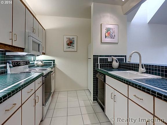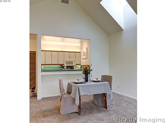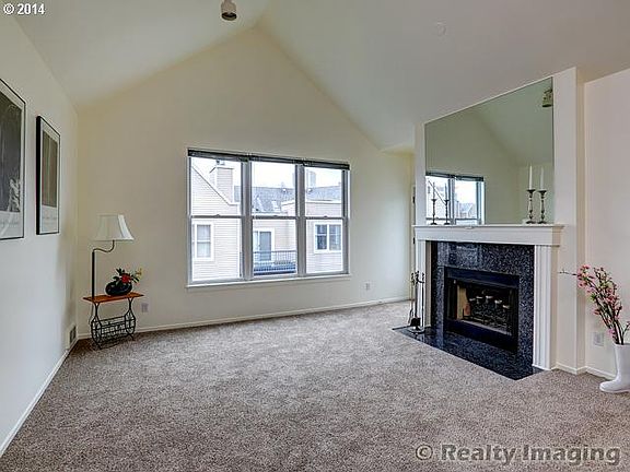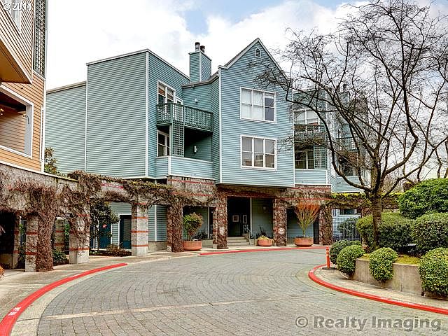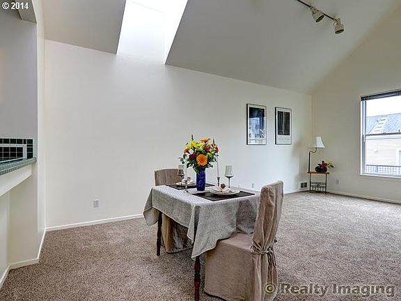 Light, bright upper level condo with vaulted ceilings, skylight, and southern exposure! New carpet & paint. Remodeled bath. All appliances, including stacked front loader washer and dryer. Wood burning fireplace. Large south-facing balcony with some river view. All with the Riverplace promenade and restaurants steps away! Streetcar access just blocks away. Siding about to be repainted an updated dark chocolate brown by HOA.