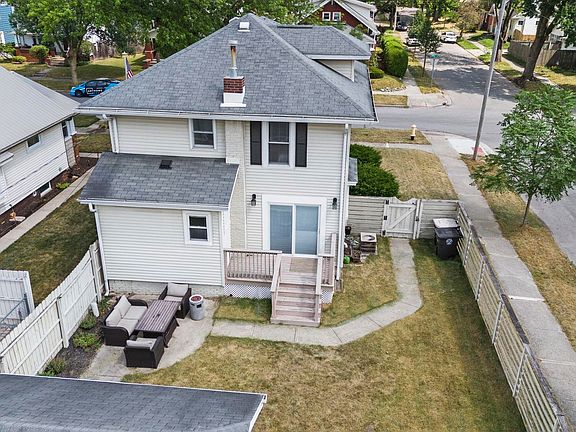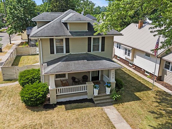 Discover this stunning 3-bedroom, 2-bath home with 2000+ sq. ft. of updated living space. Original architectural details, including leaded windows, arched doorways, and hardwood doors, add timeless charm. The covered front porch leads to the living room, which is open to the formal dining room. The spacious kitchen features white cabinetry, granite countertops, an under-mount sink, a subway-tiled backsplash, and an island with a breakfast bar. Stainless appliances are included. Upstairs, find 3 well-sized bedrooms and a full bath with a granite vanity top and custom-tiled shower. The finished basement offers a laundry room, a full bath with a walk-in shower, and a large family room perfect for gatherings or a guest suite. Special details include updated lighting fixtures, a 1-car detached garage with a service door. A backyard that is fenced in, with a deck and patio is perfect for your summer nights! Decorated in classic, neutral colors, this pristine home is move-in ready. Located on a quiet, tree-lined avenue within walking distance of Lakeside Park and downtown amenities. Property is being sold as-is.
