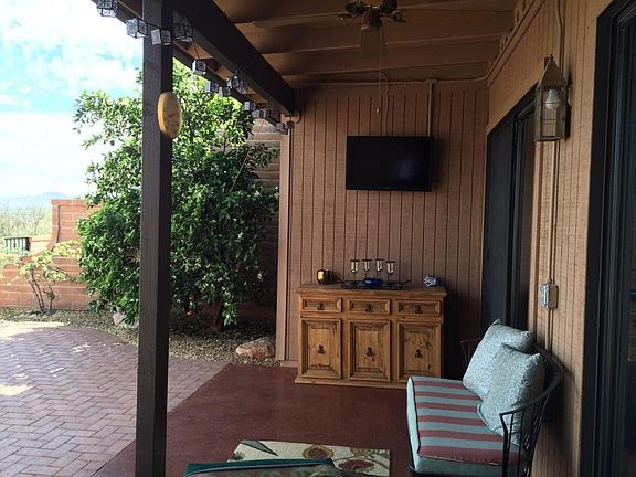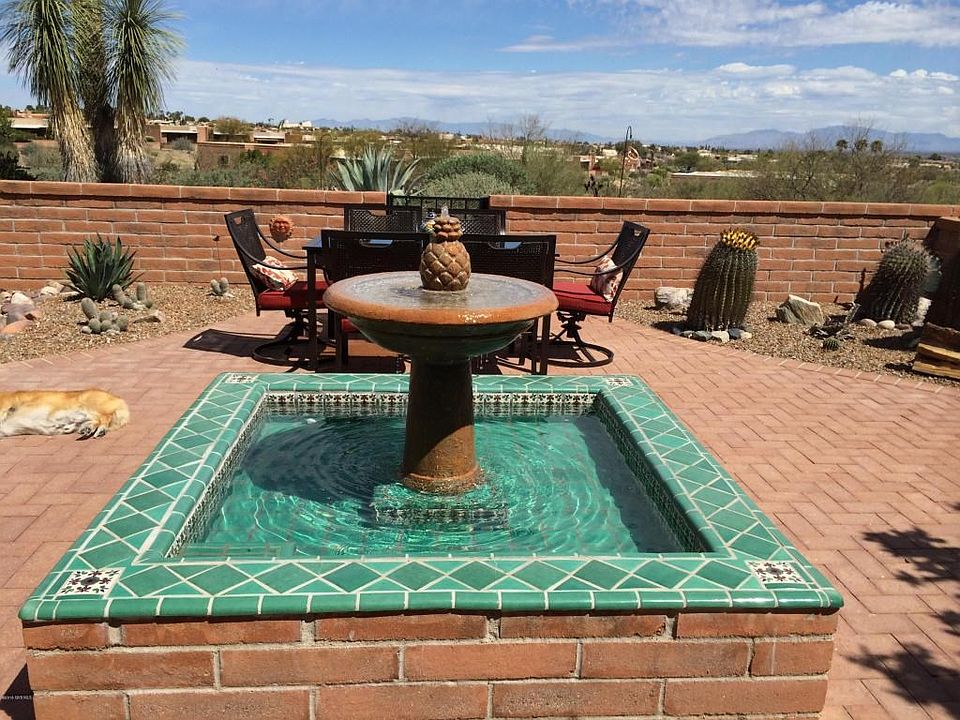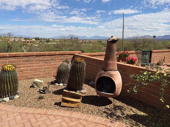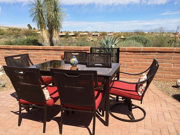 high on hill dead in street with view looking North to Catalinas and East to Rincones and Santa RitasVery nice 2 bdrm, 2 ba, and 2 car garage 1060 sq ft TH large rear patio with orange tree, and fountain.located only a couple of blocks from Canoa Rec Ctr. furnishing in home now stay.