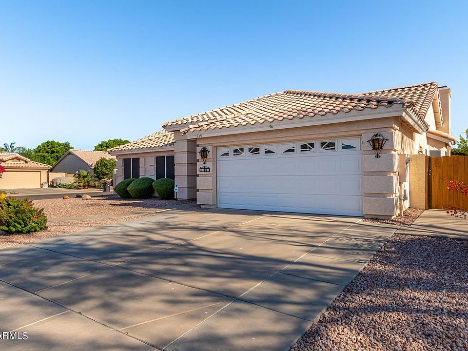Impressive corner lot home is now on the market in Mission Tierra w/a gated courtyard entry. Soaring ceilings, neutral palette, ceiling fans, neutral tile floors in all the main areas, plant shelves, and plantation shutters/blinds. The fireplace in the family room is perfect for those cool AZ nights. Practice your cooking skills in the fantastic kitchen w/oak cabinets, granite counters, and large island w/breakfast bar. Formal dining area w/a bay window. Grand master retreat w/a private en suite, dual sinks, & a large closet. Entertain your guests in this amazing backyard w/a covered patio, lush green landscape, and a sparkling blue pool you'll definitely love. Truly a must see home! Call now!