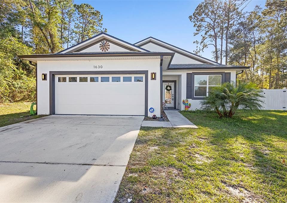 Why wait to build when you can own this stunning 2021 home loaded with upgrades you won’t get in new construction? This beautifully maintained property features a new vinyl fence, new screened lanai, and luxury vinyl plank flooring throughout—NO carpet! Enjoy a bright and open split floor plan with high ceilings, granite countertops, shaker cabinetry, stainless steel appliances, and a convenient breakfast bar. The spacious 20x21 oversized garage, inside laundry room with washer & dryer included, and gutter system offer comfort and functionality. The primary suite includes double sinks and a modern layout. Additional upgrades include a water softener system, leased solar panels with a low monthly payment of approx. $130, outdoor lighting, and quality stucco/block finishing. Situated on a large backyard lot, this home has no HOA and has been used as a short-term rental, offering flexibility for future owners. Just minutes to I-4, Orlando, Daytona, shopping, medical facilities, and the beaches—you’ll love the location and convenience. Seller is open to concessions or a rate buy-down with acceptable terms. Can close quickly. Furnishing are negotiable. Call today before this home says "Sold"