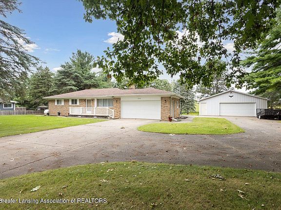 All brick ranch on 3 acres plus a 32x30 pole barn w/heat. 3 beds. Hardwood floors under carpet per owner. Pull down stairs to attic storage in garage. Newer roof. Lots of road frontage!