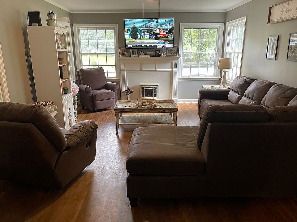 3 bedroom (one bedroom has been turned into a walk in closet) 1 bath Fenced in back yard with a fire pit Hardwood floors Central heat & air Natural gas
