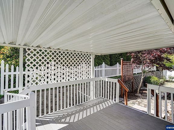 Welcome to this charming 2-bedroom + den home in a 55+ gated community in West Salem! Featuring a bright, vaulted open floor plan with wood vinyl flooring, formal dining area, and a sunny breakfast nook—ideal for reading or morning coffee. The oversized carport offers ample parking and storage in the shed, while the spacious front deck is perfect for relaxing. Enjoy low-maintenance landscaping designed for privacy. Peaceful, secure, and close to everything!