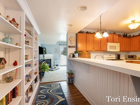 Well maintained 3 bed 2.5 bath condo. Main floor offers spacious kitchen with appliances to stay. Snack bar with room for bar stools. Nice sized pantry. Living room with a gas log fireplace and sliding door to patio area and exterior storage area. Custom floor to ceiling bookshelves. Dining area and half bath at entrance. Upstairs has owners suite with large walk-in closet and private full bath. Two more bedrooms, second full bath and laundry room complete the second floor. Attached one car garage. Association fee includes water, sewer, trash, snow removal and lawn care. Pets allowed. Schedule your private showing today!