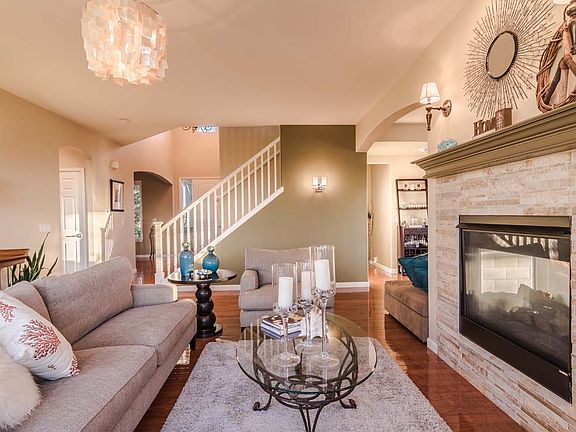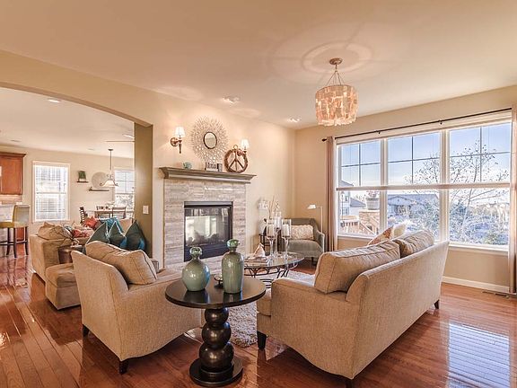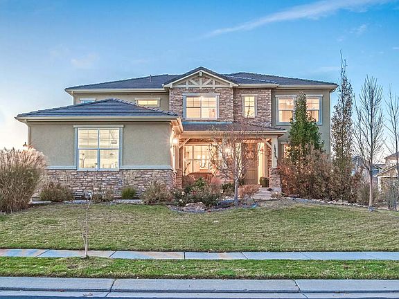 Stunning 2 story w/panoramic mountain views on corner lot in Anthem Highlands! Beautiful, open floor plan features hardwood floors, vaulted ceilings, open concept study, main floor bedroom, formal living & dining room w/Butler’s pantry perfect for hosting! The gourmet kitchen offers an abundance of cabinets, slab granite counters, SS appliances, breakfast bar, pantry & sunny eat in area w/bay window. Great room features double sided fireplace, surround sound & deck access. Retreat to upper level w/loft, master w/ amazing views, 5pc bath, coffered ceiling & walk-in closet. 2 bedrooms share a Jack & Jill bath & 3rd bedroom w/en-suite bath. The finished walkout basement is ideal for entertaining w/large rec room, wet bar w/island, storage & access to large covered stamped concrete patio! Anthem features a state-of-the-art community center, miles of trails, multiple parks & just minutes from the highly acclaimed Prospect Ridge Academy!