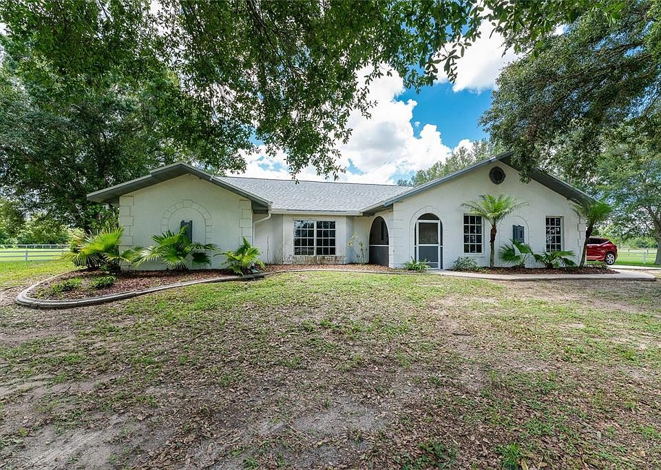 PEACEFUL COUNTRY LIVING! Calling all equestrians, farmers and nature lovers looking for their own piece of heaven. From driving down the cul-de-sac road lined with vinyl fencing to the Oak tree lined driveway this home is for you! This 3 bedroom, 2 bath, 2054 sq ft home has a new shingle roof as well as the 2736 sq ft concrete block, 7 stall barn, on 5.12 acres. The kitchen was updated 3-4 years ago as well as all the stainless-steel appliances, wood cabinets, quartz countertops, tile backsplash, and breakfast bar. The kitchen and family room all open to the pool area for an awesome gathering space for family and friends. Ceramic tile and vinyl plank flooring throughout the home. The master bedroom has walk in closets and updated wood cabinets, countertops and a large corner shower in the bathroom with direct access to the pool for a midnight dip under the stars. This home is located in the beautiful Deed Restricted community of Prairie Creek Park, an equestrian community with over 18 miles of maintained greenbelts for riding or walking. Other animals are allowed, goats, chickens, turkeys, cow's, etc. Come check out this home and community today!