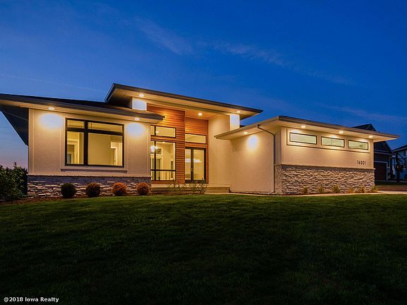 Prairie contemporary walk-out ranch, built by Boesen Homes, Custom plan; only one of it's kind. Backing up to a greenbelt park and recreational trail. Unbelievable view. 5 bedrooms (3 up & 2 down, 3.5 baths (2.5 up, 3,805 SF (2,081 sq.ft. up & 1,724 down, 10' ceiling on main floor with 12' great room with lot of windows, covered deck, lower level cabana room for great outdoor living, white Carrera quartz counters throughout. 3 car garage. Home is complete.