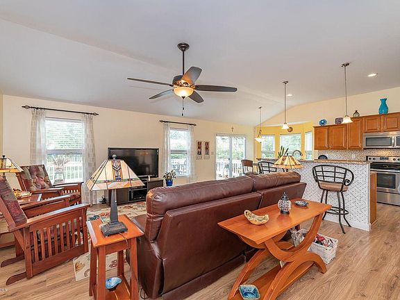 Seven years young and awaiting your personal touch. This beautiful ranch is airy with tons of natural light, 3 beds, 2 full baths, attached two car garage and much more! As you enter, you will immediately be drawn to the new flooring throughout and this open concept design. The main level features a very large family room which opens wonderfully to the dining room and eat in kitchen. Your kitchen features granite tops and a ton of counter and cabinet space, breakfast bar and pantry and a large laundry room. The master bedroom is situated just off the family room and is equipped with a tray ceiling, master bath with walk in closet and offers access to the massive rear deck and pergola that give you plenty of area to entertain or just relax. Two additional bedrooms and a full bath round out this first floor and a full unfinished basement with rough in for a third bath is also available for storage or to add additional living space.This home also comes with a fenced rear yard, tons of closet space, and lovely outdoor views.Schedule a private showing today!