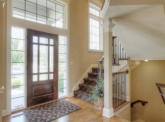 WHY BUILD? Perfection Plus custom 2sty, cul-de-sac, backs green & privacy with lake view! Seller just invested over $10,000 in improvements AND NO price increase! Granite in baths, new carpet, refinish floors, stained carriage garage doors, fresh paint & landscaping. $$ per sqft is lowest in subdivision! Main floor office w pocket doors & mud room. Front & Back Staircase, Walk-in pantry, double ovens with warming drawer, iron fence, trex deck, master with fireplace, sitting room and lake view, Euro walk-in shower & dual heads, designer paint & fixtures, stone fireplace, second floor loft, iron spindles, walk-out bsmt plumbed for addit bath!