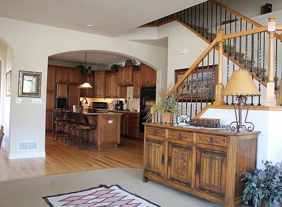 Golf Community Maintenance Free Living. Backing to the 4th fairway of the Red Rocks Golf Course, this immaculate home is well appointed throughout. The gourmet kitchen features granite counters, all appliances included, wood floors and custom cabinetry. The main floor also features a family room overlooking the golf course, formal dining and a main floor bedroom with 3/4 bath or main floor study. The 2 car garage is oversized with room to accommodate your golf cart. The full basement features high ceilings and could easily be finished for additional living space. The upper floor features an intimate master bed with a 5 pc master bath complete with a large walk-in shower. The upper floor additional bedrooms share a jack and jill bath. This is an original owner home that has been barely lived in. Don't miss a great buying opportunity!