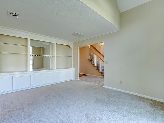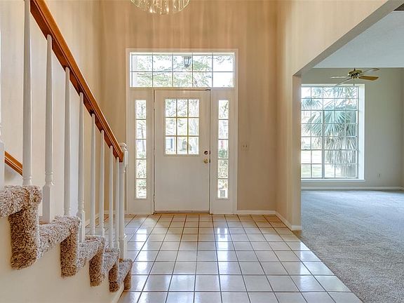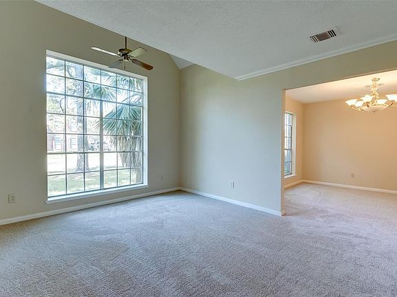 Large 4 bedroom, 2.5 bathroom. Huge den with gas log fireplace. Big open kitchen with stainless steel appliances, gas cooktop, and gas oven. Breakfast room, formal dining and formal living room with builtin bookcase. High ceilings, master down with garden tub, separate shower, and double sinks. Half bath down, in door utility with gas/electric dryer option. 3 bedrooms up, full bath with double sinks on hall. Good size landing up for extra study area. New carpet & complete interior paint! Over sized 2 car detached garage. Fenced back yard. Won't last long at this price! No flooding.