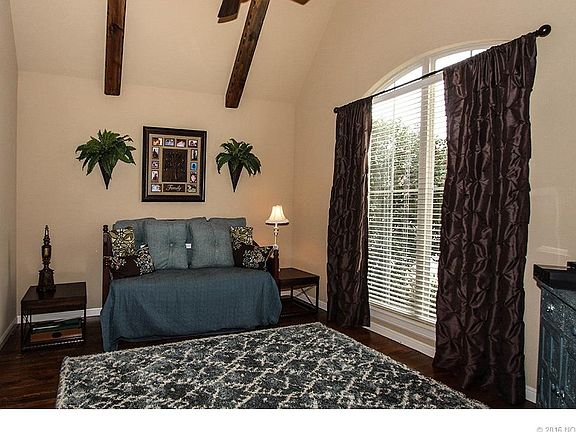 Quality throughout! Luxury details w/Arched Entries, Curved Staircase, Vaults & Beams. Gourmet kit w/walk-in pantry. 3 beds down/ Master Suite connects to lrg Laundry w/Planning desk. Expansive Attic, Corner lot, Outdoor FP, This is a must see!
