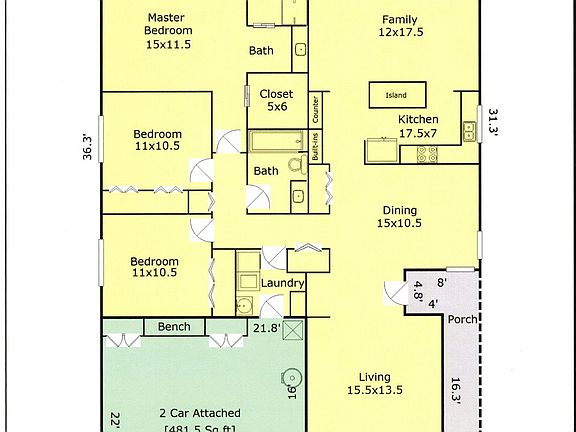 • Appliances: Dishwasher, Washer/Dryer, Double Oven, Microwave, Free-Standing Range, Free-Standing Refrigerator, Island, Pantry