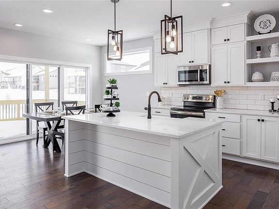 Ivory-modern farmhouse by KRM. Hardwood floors though out most of main level. Great Room w/custom stoned fireplace & mantle. Kitchen has quartz countertops & a farmhouse sink, white shaker style cabinets. Industrial looking kitchen pendants. SS appliances, corner pantry. Mudroom w/locker, separate laundry area that passes through to the master closet. Master Suite features double bowl vanities, custom shiplap tiled walk in shower & separate stool area. Huge walk in closet!! Main floor is a split 3 bedrooms home, master on one side other 2 bedrooms on other side of the home. 9ft ceiling on main level. The finished LL has a bedroom, bath, family room w/wet bar & unfinished area. Other features, 2x6 construction, shiplap, passive radon system, board & batten on front exterior, over-sized windows & covered deck
