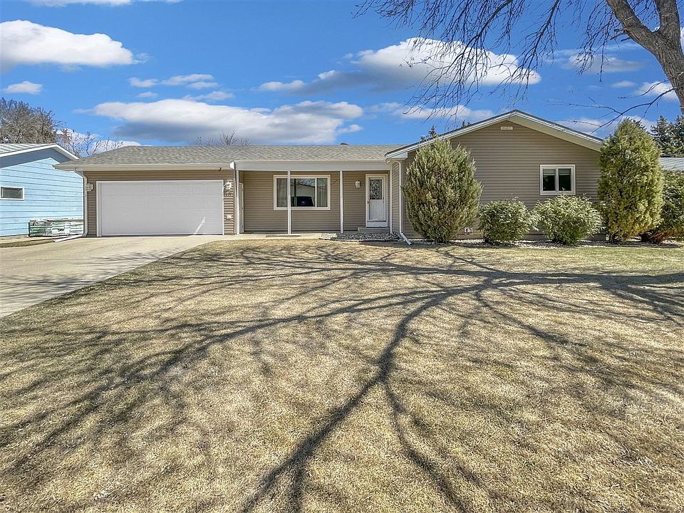Welcome to 1631! This impressive, rambler style home is move-in ready and waiting for you. The main floor boasts a spacious living room with large picture window to see the beautiful ND sunsets. Around the corner from the living room is the open dining room with built-in cabinetry and shelving along with a gas fireplace. The dining room and kitchen offer an open concept that is perfect for smooth movement between the two when hosting or everyday meals. The kitchen is updated with shaker style cabinetry, soft-close drawers and doors, pull-out shelving, tiled backsplash, island seating, and there is a window over the kitchen sink so you can see "all the things" happening in the backyard while getting your kitchen chores done. Perfectly placed between the kitchen and dining room is the patio door to the deck. This makes for easy access when grilling, hosting, or just wanting to relax. Off of the kitchen is the ideal landing spot for coats, shoes and etc. when entering from the attached, two car garage. This spot features a built-in bench & upper cubby storage. This spot does have washer/dryer hookups if you would prefer to have your laundry on the main floor. Down the hall from the living room is the master bedroom with a walk-in closet and private 3/4 bath. There are two additional bedrooms on the main floor, a full bath and two hallway closets for extra storage. Proceeding downstairs to the lower level you will find a generous-sized rec room that is bright and updated. In addition there is a non-egress (no window), multi-purpose room that the options can be customized for your use and needs. The lower level also features an updated; full bath, sizeable laundry room with cabinetry, countertop and built-in sink. Off of the laundry room is a generous storage room. Outside you will enjoy the fenced-in backyard with deck, sandbox, and storage shed. The home features steel siding, asphalt shingles (new in 2021), new gutters and downspouts in 2022, sprinkler system and extra parking space. The garage is insulated, finished, heated, access door to backyard and has room for storage in front of the cars. This home is located in SW Minot and walking distance to Edison School. Call your favorite REALTOR today to schedule a showing.
