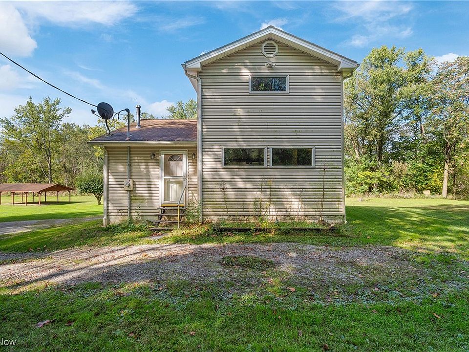 Looking for some land, large garage, something to make your own?! Then look no more, this home on the Tuscarawas River, with water access, is just what you are looking for. Owner was in the process of updating home, so will need some final touches. All newer Anderson windows throughout home. First floor has a large living room, gas fireplace, full bathroom, kitchen and dining area as well as a sunroom overlooking the river. Upstairs was converted to a very spacious single bedroom and full bathroom but could be easily changed back to a 2 bedroom. First floor laundry could be moved to basement adding another bedroom if desired. Home has newer well pump, water softeners and 200amp panel. Large 30*40 pole building, fenced in chicken coop, pavilion all on 1.76 acres.