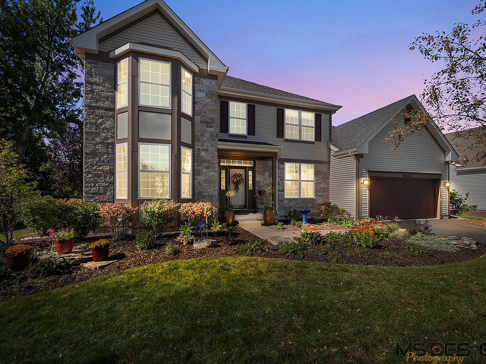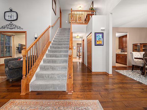 Step into this stunning, waterfront MAJESTY and let the awe-inspiring view take your breath away! This home offers the perfect blend of luxury, comfort, and functionality, making it an entertainer's dream. With 4 spacious bedrooms upstairs and 2 additional bedrooms below, plus 3.5 beautifully appointed baths, this home offers plenty of space for family and guests. As you enter, you'll be greeted by soaring vaulted ceilings and warm, rich wood floors that create an inviting and elegant atmosphere. The heart of the home is undoubtedly the chef-inspired kitchen, featuring abundant cabinetry, a striking bronze backsplash, brand-new appliances, and a serene, open feel that promises carefree days ahead. Relax with a drink from the butler's pantry, enjoy the sunsets over the water, and let the peaceful setting soothe you. When the cooler months arrive, cozy up by the fire in the family room, or retreat to the sun room, where the stunning views continue to inspire. In warmer weather, take your relaxation outdoors to two private patios, one enclosed for shade, overlooking your professionally landscaped, low-maintenance yard-perfect for both relaxation and entertaining. The home office options are endless-whether you prefer a quiet nook upstairs, a spacious area in the finished basement, or a peaceful spot near the water, you'll have a place to work and unwind. Upstairs, the luxurious master suite offers a private sanctuary with plantation shutters, a gorgeous tray ceiling, and an en-suite bath featuring a double vanity, soaking tub, and separate shower. The three additional upstairs bedrooms are equally spacious, and the full hall bath provides convenience for family and guests alike. Head down to the finished basement and you'll find the ultimate space for both relaxation and fun. Enjoy a custom bar for entertaining, a mounted TV for game nights, or simply curl up in one of the cozy corners with a good book. The basement also includes two transformed rooms currently serving as a playroom and Pilates studio-but the possibilities are endless! With ample storage throughout, including a dedicated area in the basement, you'll have room for everything. Recent upgrades include: New Roof 2020, all new appliances including washer/dryer, New exterior real stone veneer and painting, all new landscaping, custom closet in primary bedroom,new flooring in bedroom,family room, kitchen, sun room, laundry room, butler's pantry, new carpet on stairs, basement bath remodel, 2nd floor ceiling fans, new water softener and reverse osmosis system. A Home warranty of seller's choice is offered with this home as well as a goodwill gift to the buyer. Happy buying!!