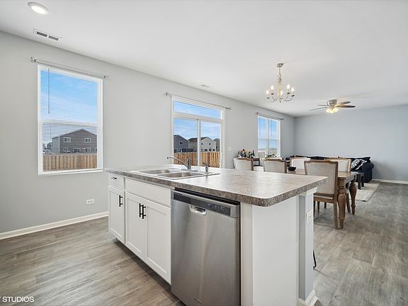 Do not miss an opportunity to own a beautiful newer construction home in highly sought after Parkside at Cambridge Lakes in Pingree Grove! Situated on a large lot, this home features 3 large bedrooms, 2.5 baths, front office, and a second story loft. Functional floor plan with 9' ceilings and vinyl flooring will lead you to the spacious kitchen with breakfast bar seating, walk in pantry, and stainless steel appliances. Upstairs you'll find a secondary living space, laundry room, and a huge primary suite with walk-in closet, dual vanity, and private bath. Enjoy the concrete patio overlooking the fully fenced yard with a newly planted Autumn Blaze tree, shed, and bon fire pit, perfect for summer nights. Extra cabinets in the drywalled 2 car garage offer extra storage. The small HOA fee gets you access to the community center at Cambridge Lakes that offers a pool, fitness center, basketball courts, studio classes, clubhouse, ponds for fishing/kayaking, walking paths, children's activities, and much more!