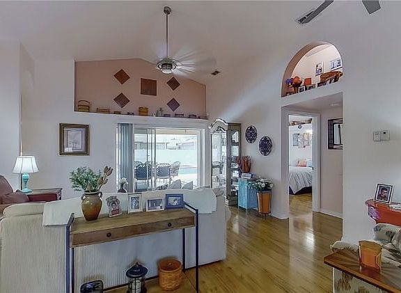 I'm a light and bright pool home sitting on an oversized fenced in lot in sunny Cape Coral, FL. Just minutes from the water park, beaches, shopping and restaurants. Impeccably maintained 3 bedrooms, 2 bathrooms and 2 car garage with a screened in inground heated swimming pool and spa. The pride of ownership will be evident the minute you step foot through the front door. Durable hard wood in the dry rooms and tiles in the wet areas, most major systems have been recently replaced including the roof and central A C in 2019, water heater and wall A C in the garage last year. The garage has been turned into an office which will make this property ideal for the home based entrepreneur but no conversion is needed to turn it back into a functioning garage other than removing the glass sliding doors. City water, sewer and irrigation with all the assessments in and paid in full. 8 additional parking spaces available on the property and a shed. I will also make a great BnB or vacation rental.