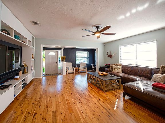 Come experience this large and beautifully renovated 3/2 single family home with a large salt water pool and space for carport. Kitchen features new cabinets, countertops, and state of the art kitchen appliances including a gas stove. Beautiful hardwood floors throughout. Split bedroom plan. All three bedrooms rooms are large enough to fit a king size bed. Large and open living room space. Hurricane impact windows and doors through out the house . Large size backyard big enough to fit a small boat. Separate laundry room with full size washer and dryer. Roof and AC replaced under 6 years, electrical system upgraded and the home has a security system. NO HOA!