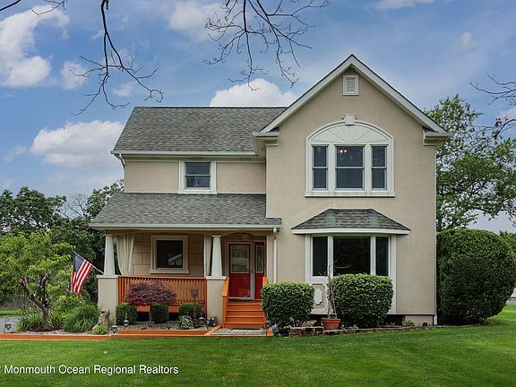 Center Hall Colonial 3 bed 2 full bath with inviting front porch to enjoy a summer breeze. This home has hardwood floors throughout. Open floor plan with spacious eat in kitchen, formal dining and living room. The Family room has a beautiful fireplace, and french doors leading to deck and yard. The full basement is great additional space for storage or can be finished for entertainment. the detached garage has an additional area for a workshop or office. This great location is close to beaches, shopping, dinning and all major highways.