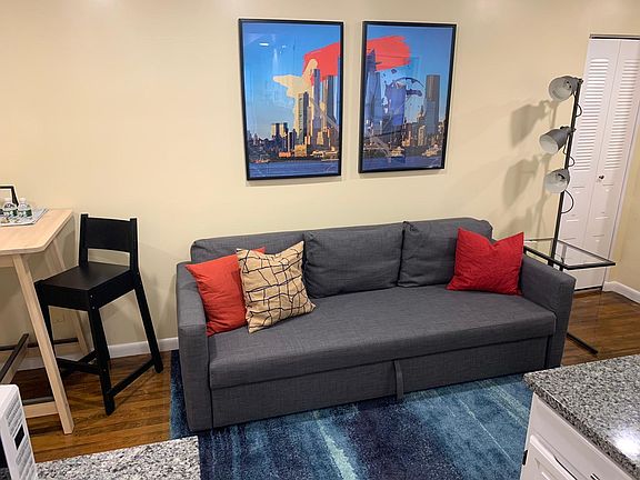 Fully furnished 2 bed apartment. Elevator at the building Tv in each room Laundry on site We offer private parking for a monthly fee Steps to bus stop to NYC. Commute to NYC 25 minutes. 1 year lease, minimun rental 6 months All utilities included (Water, electric, gas, AC, Wifi) No Suitable for pets Lease Agreement 1.5 month security deposit