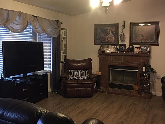 This 3 bedroom 2 bath home features updated flooring, indoor laundry. Has brick fireplace in living room. Kitchen has breakfast nook with tile counter tops and tile flooring in kitchen. This home is perfect for first time buyers, walking distance to school. Exterior has 2 car garage and covered patio.