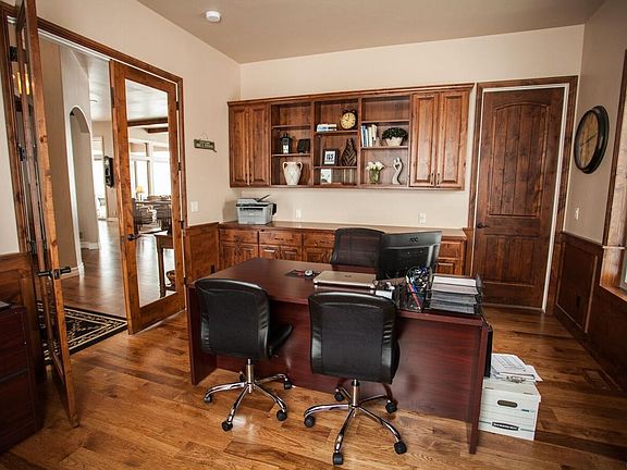 Spectacular high end custom ranch home in Kings Deer with walk out basement and mountain views on 2.5 acres! This home is extremely spacious with 5 bedrooms all with walk in closets, 5 bathrooms, a mudroom, separate office with stained wainscoting, formal and eat in dining spaces, an enormous home theater, and an exercise room. You'll find extraordinary features such as a gourmet kitchen with custom cabinets, large island with attractive granite counter-tops, a huge and hidden walk in pantry, and stainless steel appliances. With an open floor plan, huge picture windows, wood beams on the ceiling, impressive stone fireplace and gorgeous mountain views. The large master suite has an elegant bathroom featuring large jetted tub, two headed walk in shower adorned with custom tile work and enormous walk in closet with washer and dryer.