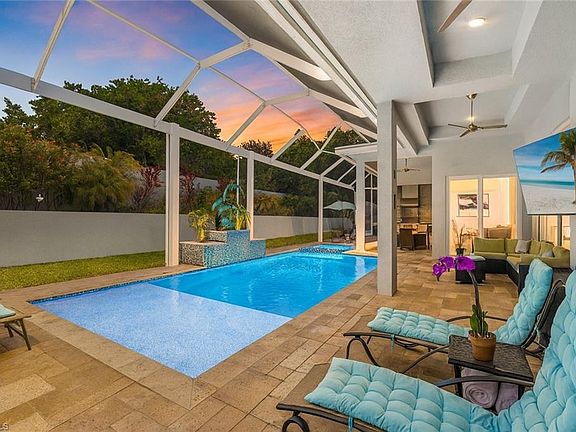 Exquisite Coastal Estate – Steps from the Gulf, Half-Acre Lot, and Fully Customized This stunning 4-bedroom plus den, 3-car garage residence sits on a rare half-acre homesite in one of the most exclusive estate neighborhoods near Marco Island—just steps from the shimmering waters of the Gulf. Built with elevated design and having sustained no hurricane damage, this home offers the perfect blend of safety, sophistication, and seaside luxury. Inside, you’ll find soaring vaulted ceilings and a bright, coastal-inspired interior that’s filled with natural light. Wide-plank tile flooring runs throughout, anchoring an open layout that flows effortlessly from the living area to the dining area to the entertaining space. The custom kitchen is a chef’s dream, complete with quartz countertops, sleek white cabinetry, double wall ovens, and a large island perfect for gathering. A built-in wet bar adds a touch of elegance, ideal for hosting or everyday enjoyment. Glass sliders open to an expansive covered lanai, where an outdoor kitchen, TV lounge, and a custom-designed pool and spa with elegant water features create your own private resort. A 500-gallon underground propane tank fuels the built-in BBQ & generator. The oversized yard is beautifully landscaped, offering space and privacy rarely found this close to the Gulf. The primary suite is a true retreat, featuring direct access to the outdoor living space, dual walk-in closets, and a luxurious spa-style bathroom with a glass-enclosed walk-in shower and a dramatic freestanding soaking tub. A dedicated home office with large windows provides inspiring views and abundant natural light, making it a productive and peaceful workspace. This is a rare opportunity to own in a high-end coastal enclave with no HOA restrictions, quick access to the open Gulf waters, and every feature today’s buyers are looking for. Whether you’re seeking a full-time residence or a high-performing rental investment, this home delivers on all fronts — location, design, and lifestyle.