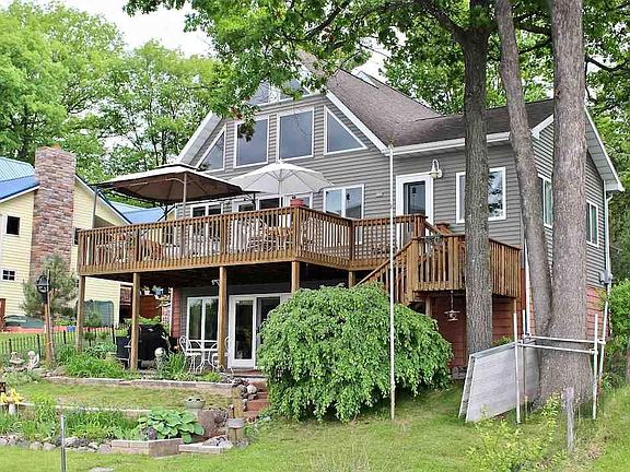 Very nice cottage at Crooked Lake. 50 ft of waterfront. Lots of windows for great views. 36x48 pole barn across from home that will accomodate a motor home. Charter available for TV, internet and phone. Beatifullly decorated home with updated plumbing and electrical. Wallkout lower level. Updated kitchen, siding newer, A Must see. Restored antique tin ceiling in kitchen. Seawall less than 5 years old. Pierre Marquette Rail Trail close by. Tongue and groove pine cathedral ceilings in living room and upper bedroom. Stone fireplace. Stone fireplace. Leaded glass French doors to sun room. Just a few steps to lake. Bamboo wood flooring n main level--eco friendly. Addition and renovation done in 2004. Seller serious about selling, make serious offer!! In one tax bill is a $33.00 Crooked Lake Improvement Assessment and in another tax bill is a $150.00 Crooked Lake Improvement Assessment.